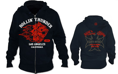 the sweatshirt named "Rollin' Thunder" is deducate to historical MC club from LA area in California.